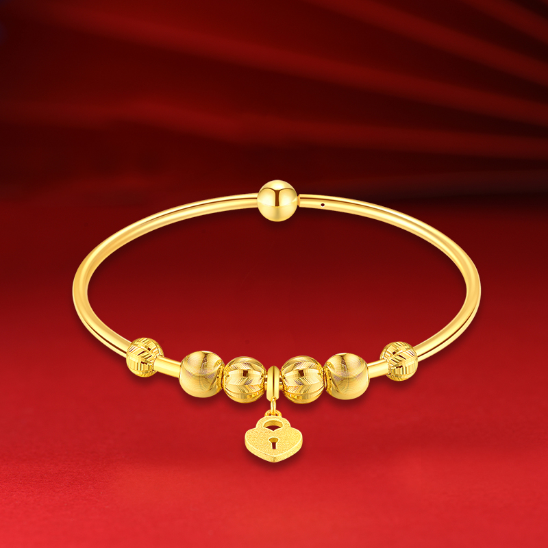 貓眼珠黃金手鐲“祈福”“心鑰”“心鎖”系列。貓眼珠系列手鐲寓意一把鑰匙開一把鎖,只為自己的愛人打開內(nèi)心的美好祝愿,并為心愛的人祈求平安幸福。